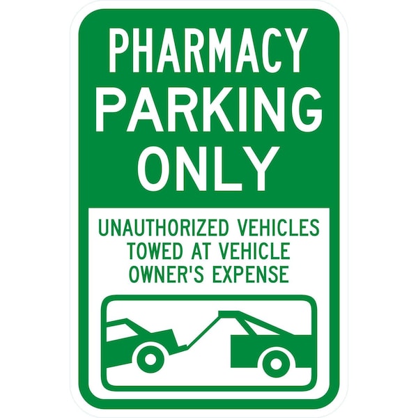 Pharmacy Parking Only Unauthorized Vehicles Towed At, 12x18, Engineer Grade, White