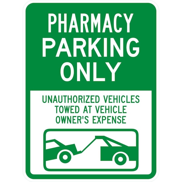 Pharmacy Parking Only Unauthorized Vehicles Towed At, 18x24, Engineer Grade, White