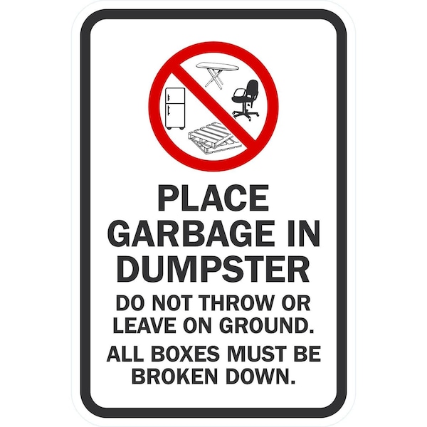 Place Garbage Inside Dumpster, 12x18, Non-Reflective, White