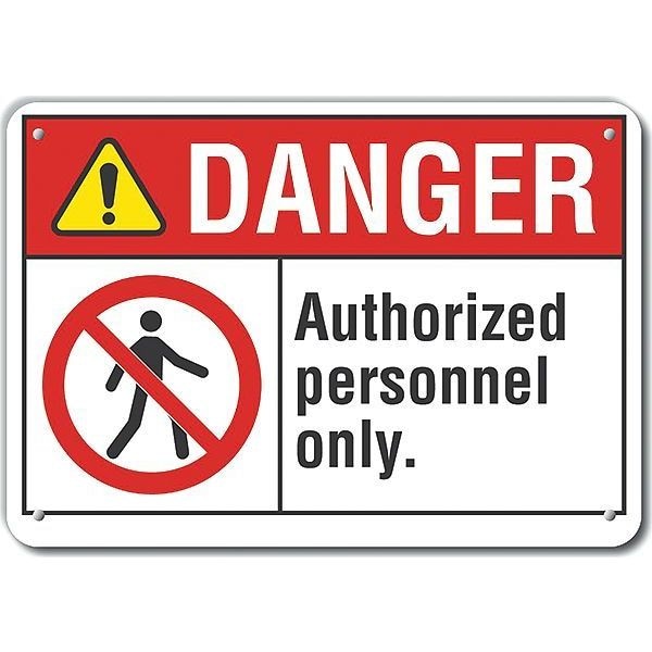 Plastic Authorized Personnel Danger Sign, Vertical Rectangle, Number of Printed Sides 1, English, Sign Format ANSI/OSHA Format, Sign Legend Authorized Personnel Only., Sign Legend Background Color White, Sign Legend Style Symbol and Text