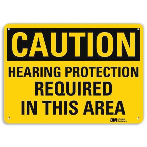 Caution Sign, Vertical Rectangle, Number of Printed Sides 1, English, Sign Format Traditional OSHA, Sign Legend Hearing Protection Required In This Area, Sign Legend Background Color Yellow, Sign Legend Style Text
