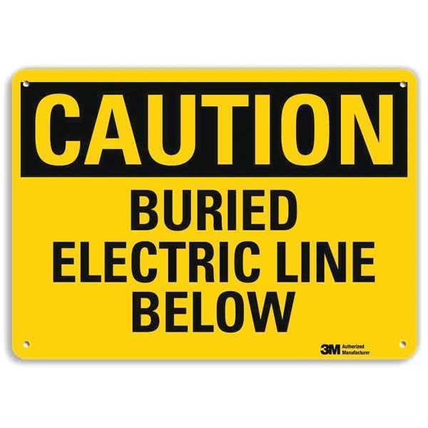 Caution Sign, Horizontal Rectangle, Number of Printed Sides 1, English, Sign Format Traditional OSHA, Sign Legend Buried Electric Line Below, Sign Legend Background Color Yellow, Sign Legend Style Text