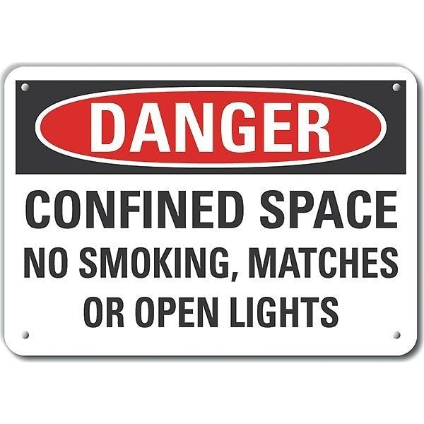 Plastic Confined Space Danger Sign, Horizontal Rectangle, Number of Printed Sides 1, English, Sign Format Traditional OSHA, Sign Legend Confined Space No Smoking, Matches Or Open Lights, Sign Legend Background Color White, Sign Legend Style Text