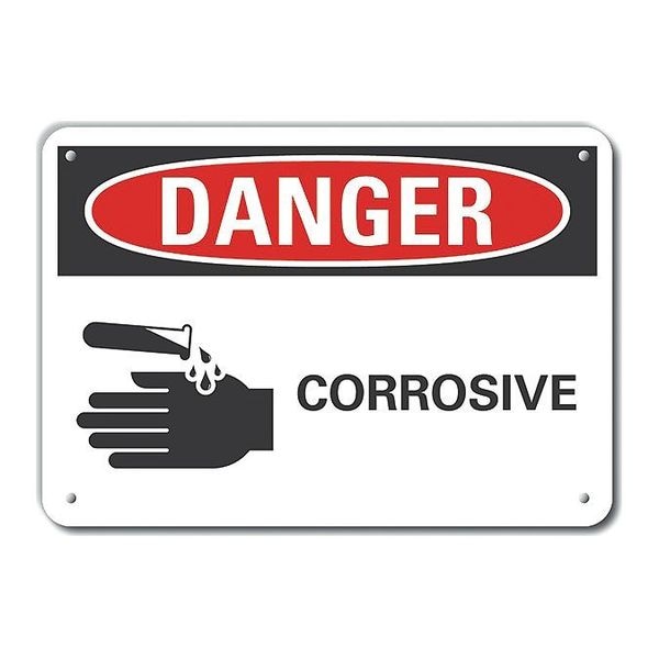 Plastic Corrosive Materials Danger Sign, 7 in H, 10 in W, Vertical Rectangle, LCU4-0216-NP_10X7