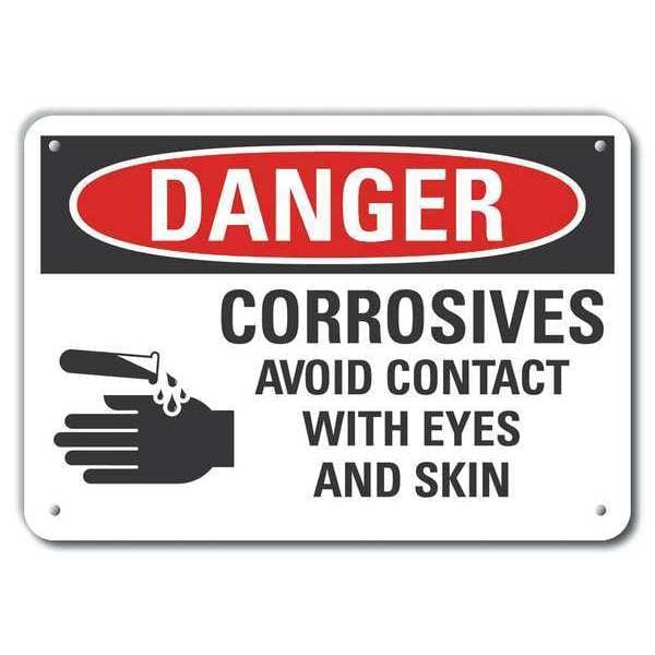 Plastic Corrosive Materials Danger Sign, Vertical Rectangle, Number of Printed Sides 1, English, Sign Format ANSI/OSHA Format, Sign Legend Corrosives Avoid Contact With Eyes And Skin, Sign Legend Background Color White, Sign Legend Style Symbol and Text