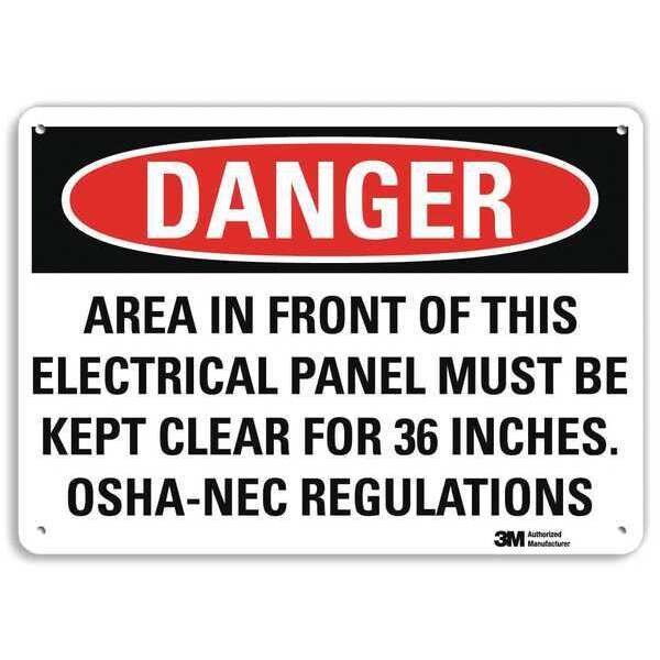 Danger Sign, Vertical Rectangle, Number of Printed Sides 1, English, Sign Format Traditional OSHA, Sign Legend Area In Front Of This Electrical Panel Must Be Kept Clear For 36 Inches Osha-Nec Regulation, Sign Legend Background Color White, Sign Legend Style Text