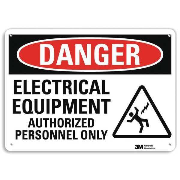 Danger Sign, Vertical Rectangle, Number of Printed Sides 1, English, Sign Format Traditional OSHA, Sign Legend Electrical Equipment Authorized Personnel Only, Sign Legend Background Color White, Sign Legend Style Symbol and Text
