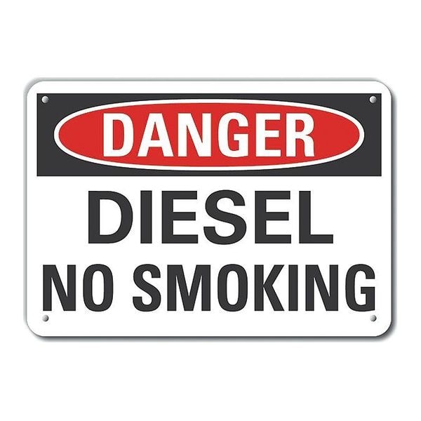 Plastic Diesel Danger Sign, Horizontal Rectangle, Number of Printed Sides 1, English, Sign Format Traditional OSHA, Sign Legend Diesel No Smoking, Sign Legend Background Color White, Sign Legend Style Text