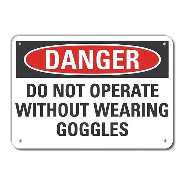 Plastic Eye Danger Sign, Horizontal Rectangle, Number of Printed Sides 1, English, Sign Format Traditional OSHA, Sign Legend Do Not Operate Without Wearing Goggles, Sign Legend Background Color White, Sign Legend Style Text