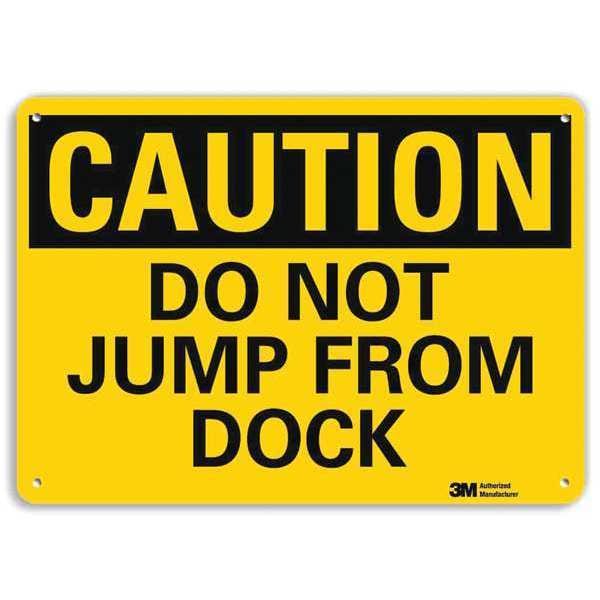 Plastic Facility Information Sign, Horizontal Rectangle, Number of Printed Sides 1, English, Sign Format Traditional OSHA, Sign Legend Do Not Jump From Dock, Sign Legend Background Color Yellow, Sign Legend Style Text