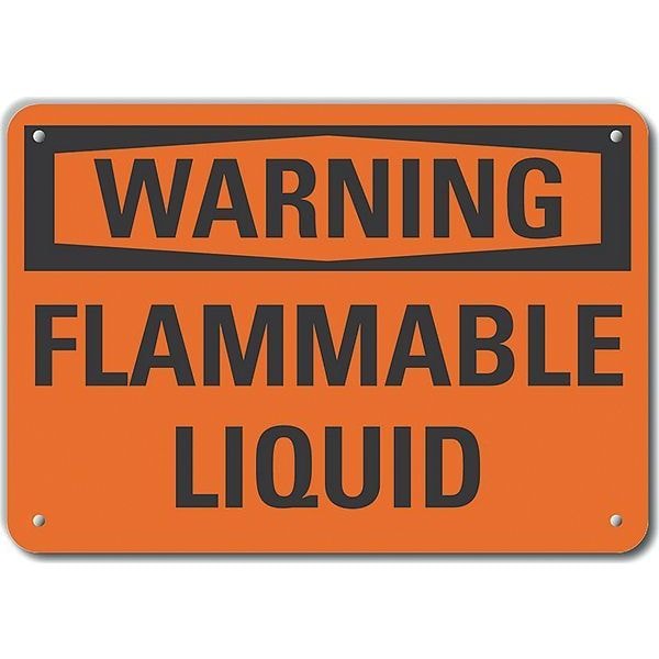 Plastic Flammable Liquid Warning Sign, Horizontal Rectangle, Number of Printed Sides 1, English, Sign Format Traditional OSHA, Sign Legend Flammable Liquid, Sign Legend Background Color Orange, Sign Legend Style Text