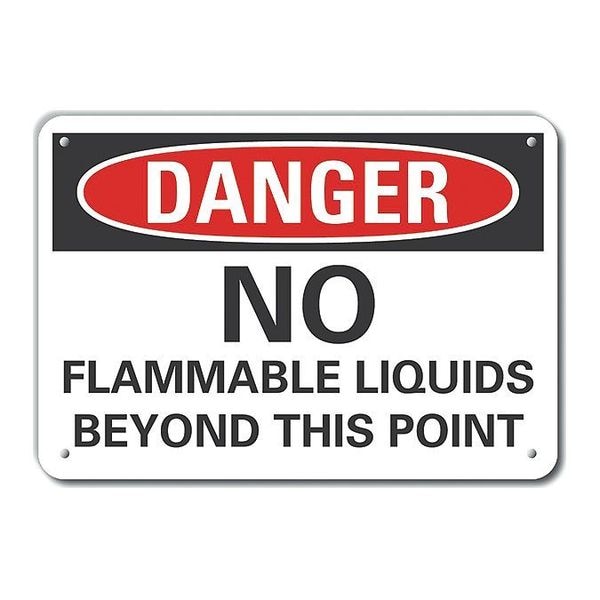 Plastic Flammable Material Danger Sign, Vertical Rectangle, Number of Printed Sides 1, English, Sign Format Traditional OSHA, Sign Legend No Flammable Liquids Beyond This Point, Sign Legend Background Color White, Sign Legend Style Text