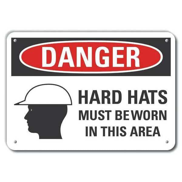 Plastic Hard Hat Danger Sign, Vertical Rectangle, Number of Printed Sides 1, English, Sign Format ANSI/OSHA Format, Sign Legend Hard Hats Must Be Worn In This Area, Sign Legend Background Color White, Sign Legend Style Symbol and Text