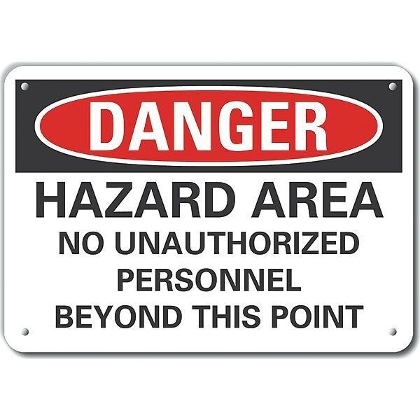 Plastic Hazard Area Danger Sign, Horizontal Rectangle, Number of Printed Sides 1, English, Sign Format Traditional OSHA, Sign Legend Hazard Area No Unauthorized Personnel Beyond This Point, Sign Legend Background Color White, Sign Legend Style Text