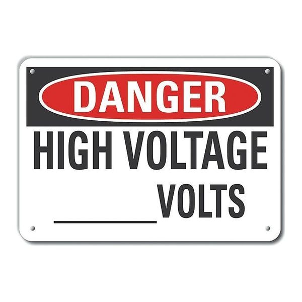 Plastic High Voltage Danger Sign, Vertical Rectangle, Number of Printed Sides 1, English, Sign Format Traditional OSHA, Sign Legend High Voltage ___ Volts, Sign Legend Background Color White, Sign Legend Style Text