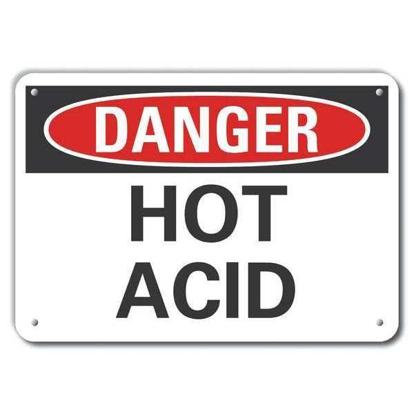 Plastic Hot Acid Danger Sign, Vertical Rectangle, Number of Printed Sides 1, English, Sign Format Traditional OSHA, Sign Legend Hot Acid, Sign Legend Background Color White, Sign Legend Style Text