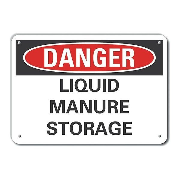Plastic Liquid Manure Danger Sign, Horizontal Rectangle, Number of Printed Sides 1, English, Sign Format Traditional OSHA, Sign Legend Liquid Manure Storage, Sign Legend Background Color White, Sign Legend Style Text