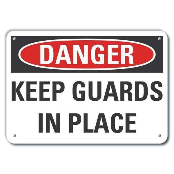 Plastic Machine Guards Danger Sign, Vertical Rectangle, Number of Printed Sides 1, English, Sign Format Traditional OSHA, Sign Legend Keep Guards In Place, Sign Legend Background Color White, Sign Legend Style Text