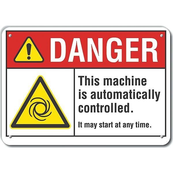 Plastic Machine & Operation Danger Sign, Horizontal Rectangle, Number of Printed Sides 1, English, Sign Format ANSI/OSHA Format, Sign Legend This Machine Is Automatically Controlled. It May Start At Any Time., Sign Legend Background Color White, Sign Legend Style Symbol and Text