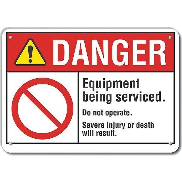 Plastic Machine & Operation Danger Sign, Horizontal Rectangle, Number of Printed Sides 1, English, Sign Format ANSI/OSHA Format, Sign Legend Equipment Being Serviced. Do Not Operate. Severe Injury Or Death Will Result., Sign Legend Background Color White, Sign Legend Style Symbol and Text