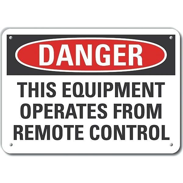 Plastic Machine & Operation Danger Sign, Vertical Rectangle, Number of Printed Sides 1, English, Sign Format Traditional OSHA, Sign Legend This Equipment Operates From Remote Control, Sign Legend Background Color White, Sign Legend Style Text