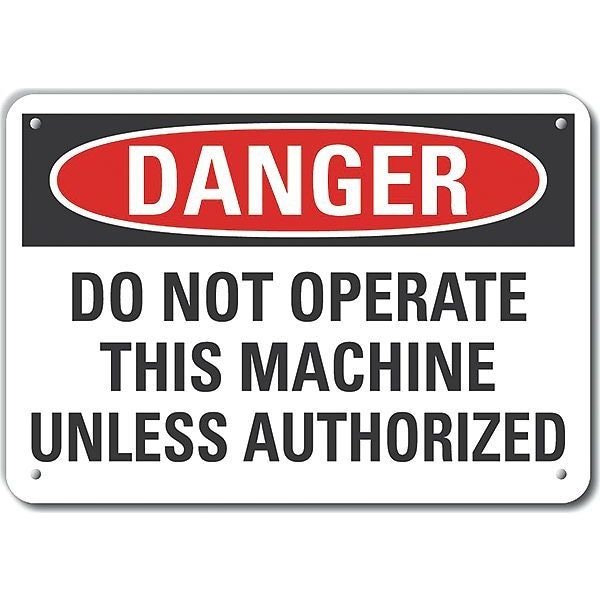 Plastic Machine & Operation Danger Sign, Vertical Rectangle, Number of Printed Sides 1, English, Sign Format Traditional OSHA, Sign Legend Do Not Operate This Machine Unless Authorized, Sign Legend Background Color White, Sign Legend Style Text