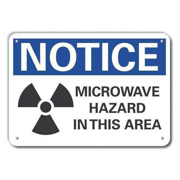 Plastic Microwave Notice Sign, Vertical Rectangle, Number of Printed Sides 1, English, Sign Format ANSI/OSHA Format, Sign Legend Microwave Hazard In This Area, Sign Legend Background Color White, Sign Legend Style Symbol and Text