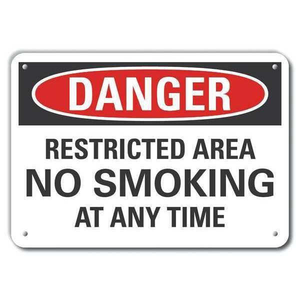 Plastic No Smoking Danger Sign, Horizontal Rectangle, Number of Printed Sides 1, English, Sign Format Traditional OSHA, Sign Legend Restricted Area No Smoking At Any Time, Sign Legend Background Color White, Sign Legend Style Text