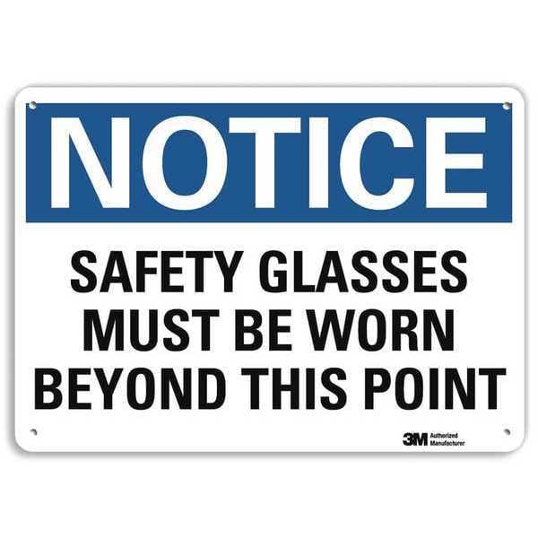 Notice Sign, Vertical Rectangle, Number of Printed Sides 1, English, Sign Format Traditional OSHA, Sign Legend Safety Glasses Must Be Worn Beyond This Point, Sign Legend Background Color White, Sign Legend Style Text