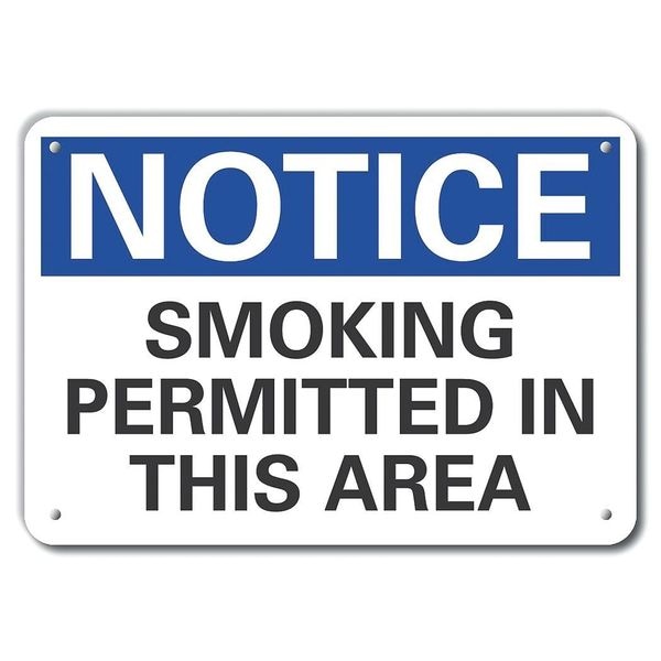 Plastic Smoking Area Notice Sign, 7" H, 10" W, Plastic, Vertical Rectangle, LCU5-0152-NP_10X7
