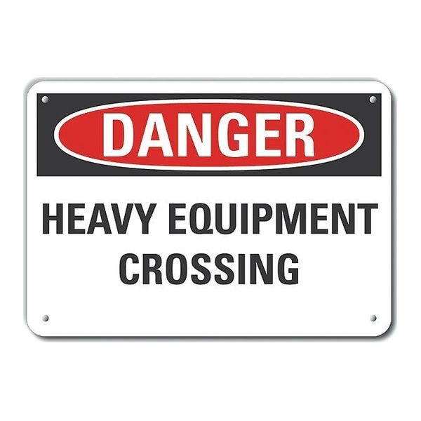 Plastic Traffic Safety Danger Sign, Horizontal Rectangle, Number of Printed Sides 1, English, Sign Format Traditional OSHA, Sign Legend Heavy Equipment Crossing, Sign Legend Background Color White, Sign Legend Style Text