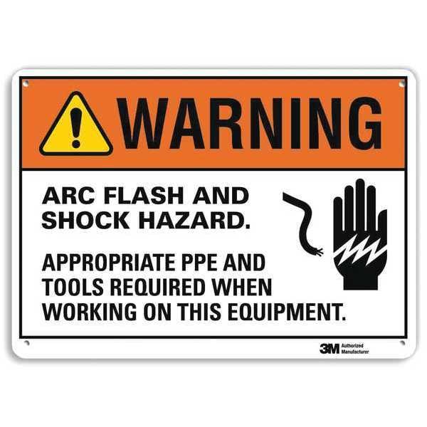 Warning Sign, Vertical Rectangle, Number of Printed Sides 1, English, Sign Legend Arc Flash And Shock Hazard. Appropriate PPE And Tools Required When Working On This Equipment., Sign Legend Background Color Orange, Sign Legend Style Symbol and Text