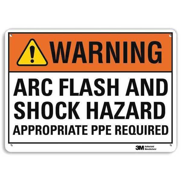Warning Sign, Vertical Rectangle, Number of Printed Sides 1, English, Sign Legend Arc Flash And Shock Hazard Appropriate PPE Required, Sign Legend Background Color Orange, Sign Legend Style Symbol and Text