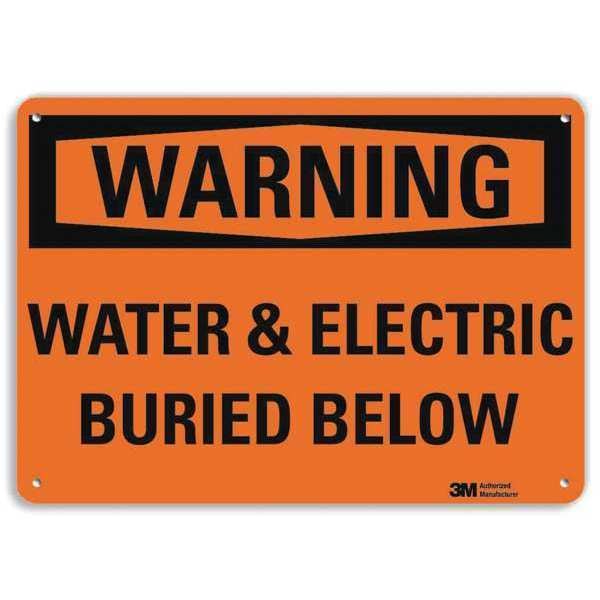 Security Sign, Vertical Rectangle, Number of Printed Sides 1, English, Sign Format Traditional OSHA, Sign Legend Water & Electric Buried Below, Sign Legend Background Color Orange, Sign Legend Style Text