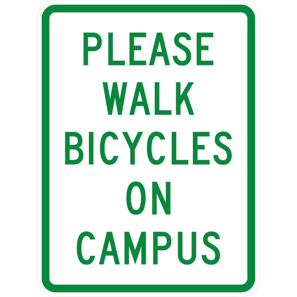 Please Walk Bicycles on Campus Sign, 18x24, Non-Reflective, White
