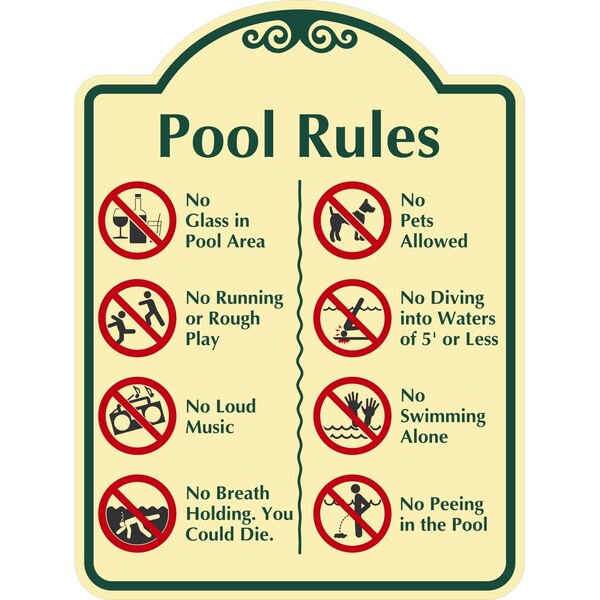 Pool Rules Prohibition Rules at Pool Area with, 12x18, Non-Reflective, Tan
