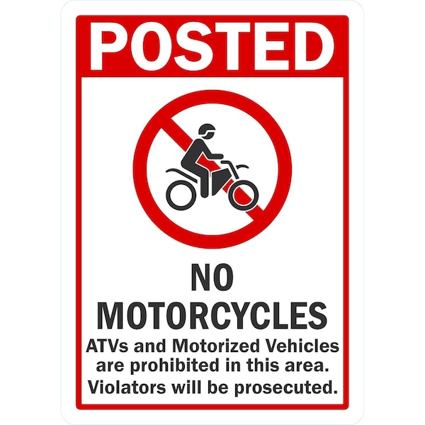 Posted No Motorcycles ATVs and Motorized Vehicles..., 10x14, Non-Reflective, White