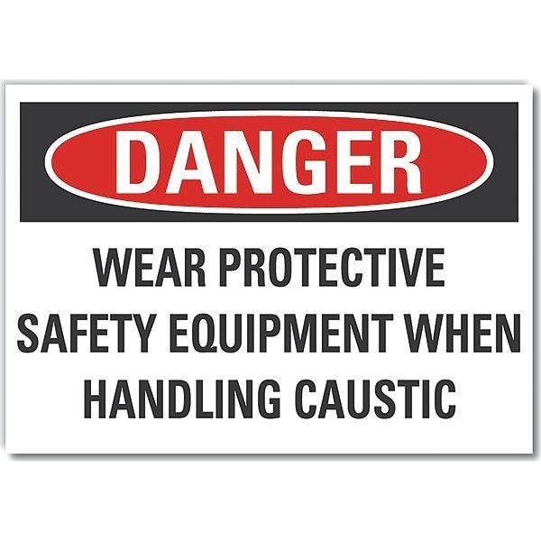 Ppe Danger Label, Horizontal Rectangle, Number of Printed Sides 1, English, Sign Format Traditional OSHA, Sign Legend Wear Protective Safety Equipment When Handling Caustic, Sign Legend Background Color White, Sign Legend Style Text