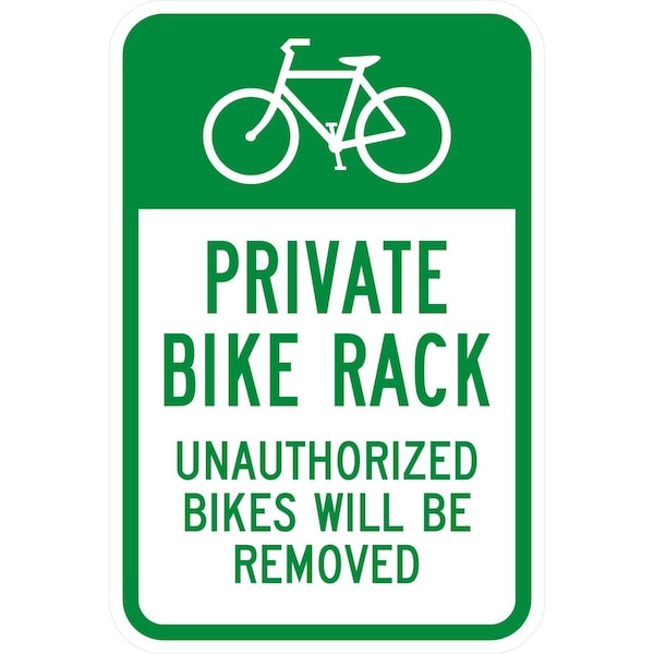Private Bike Rack Unauthorized Bikes Will Be Removed, 12x18, Diamond Grade, White