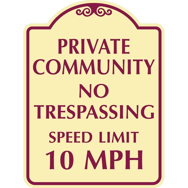 Private Community No Trespassing Speed Limit 10 MPH, 12x18, Engineer Grade, Tan
