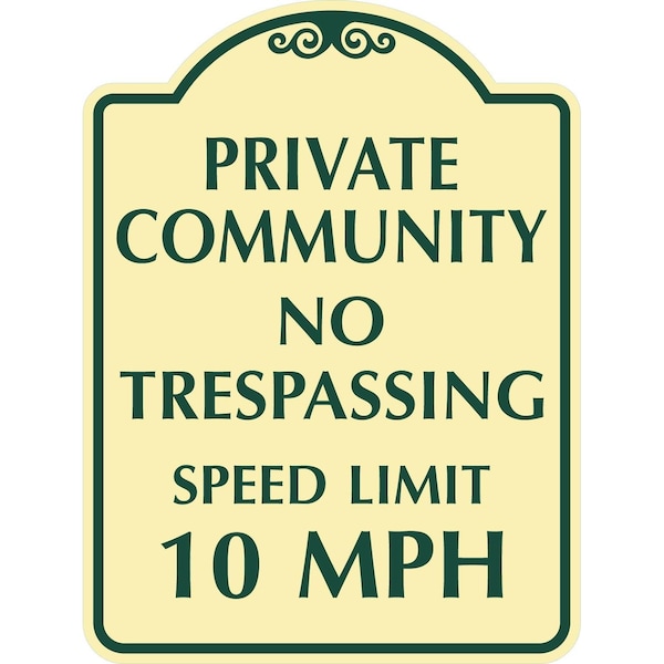 Private Community No Trespassing Speed Limit 10 MPH, 12x18, Engineer Grade, Tan
