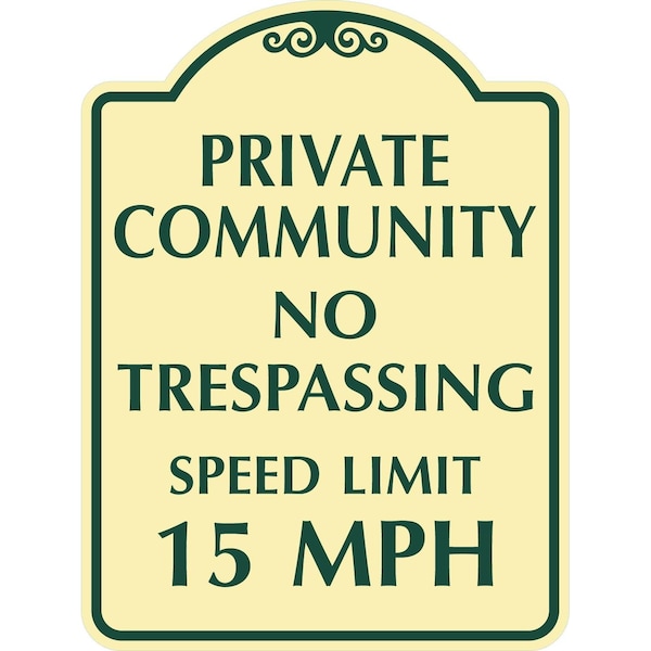 Private Community No Trespassing Speed Limit 15 MPH, 12x18, Engineer Grade, Tan