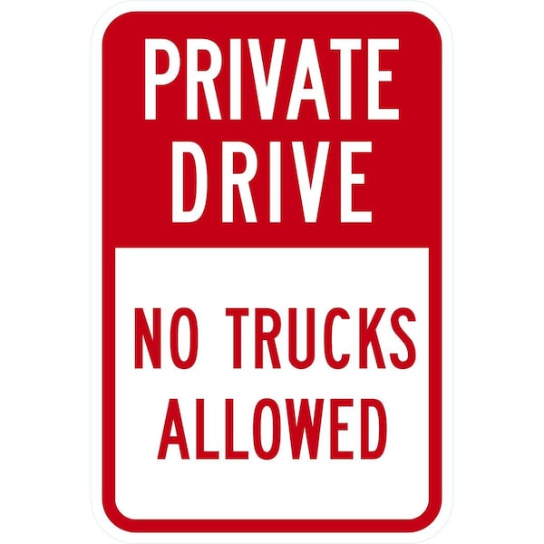 Private Drive No Trucks Allowed, 12x18, High Intensity Prismatic, White