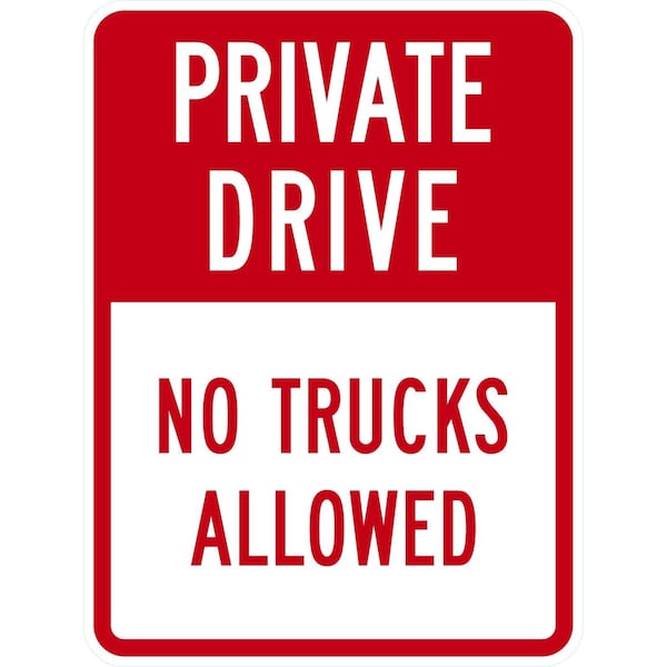 Private Drive No Trucks Allowed, 18x24, Non-Reflective, White
