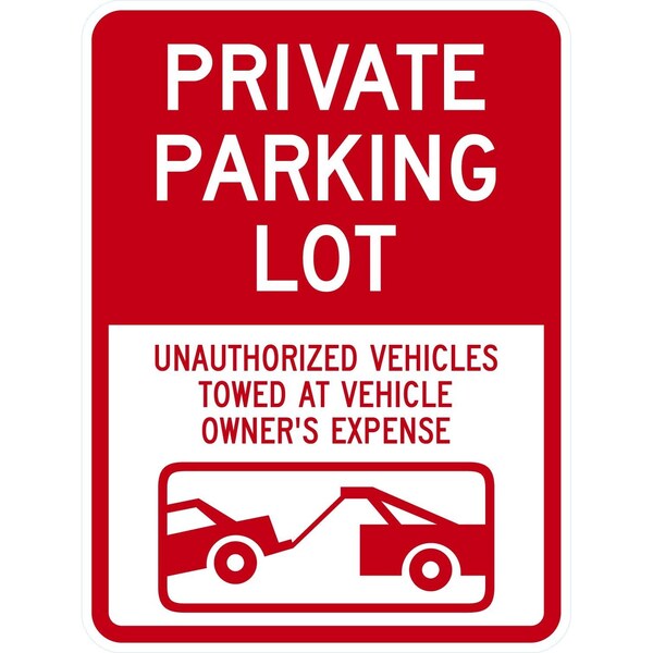 Private Parking Lot, Unauthorized Vehicles Towed At, 18x24, High Intensity Prismatic, White