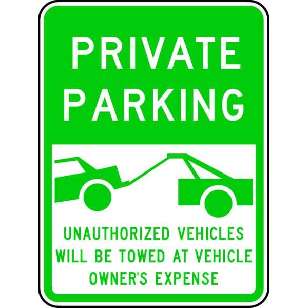 Private Parking Sign, Height 24 in, Width 18 in, Sign Material Aluminum, Sign Mounting Style Mounting Holes, Printed Language English, Sign Shape Vertical Rectangle