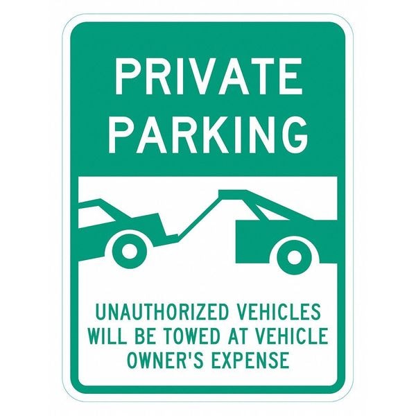 Private Parking Sign, Height 24 in, Width 18 in, Sign Material Aluminum, Sign Mounting Style Mounting Holes, Printed Language English, Sign Shape Vertical Rectangle