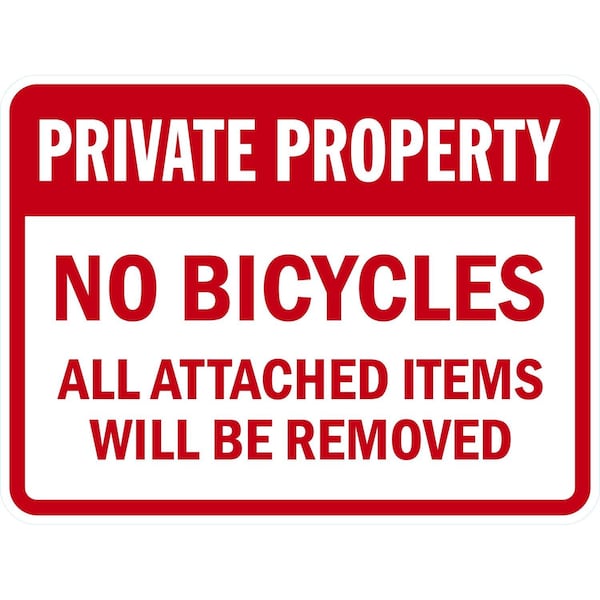Private Property No Bicylces All Attached Items, 24x18, Engineer Grade, White