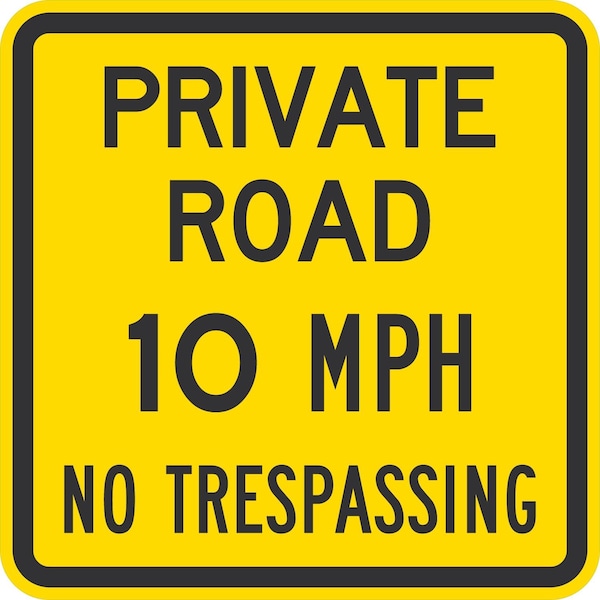 Private Road 10 Mph No Trespassing, 24x24, Engineer Grade, Yellow