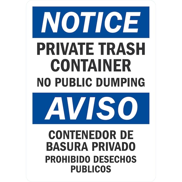 Private Trash Container, No Public Dumping / Contenedor Priv, 10x14, Non-Reflective, White